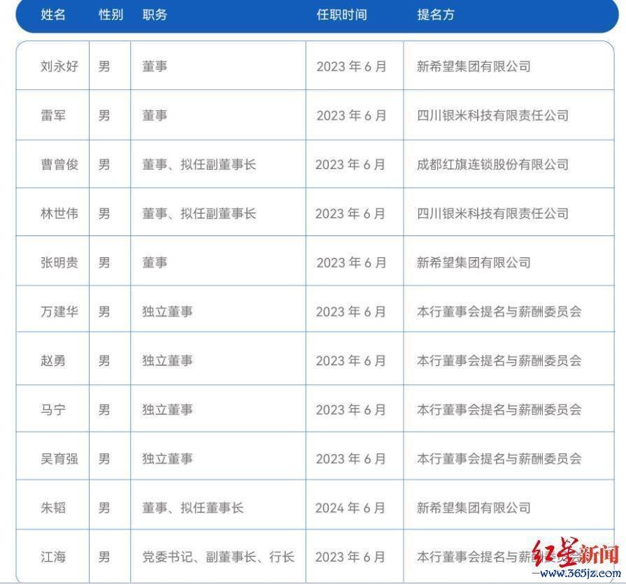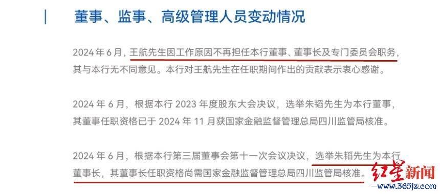 同时,该行已选举朱韬为新任董事长,其董事长任职资格尚需国家金融监督管理总局四川监管局核准。